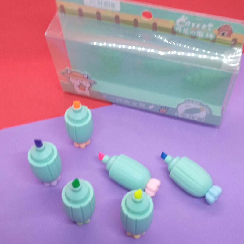 Esse kit super fofinho contém 6 cores de marca texto: Rosa, verde, laranja, lilás, amarelo e azul.